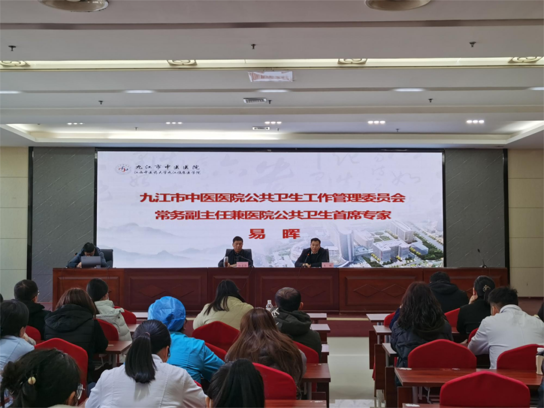 为加强医院公共卫生工作的统筹协调与规范管理,提升突发公共卫生事件应对能力,12月26日,九江市中医医院召开公共卫生工作管理委员会2025年度工作会议,医院党委副书记、院长,委员会主任委员伍宏泽,医院党委委员、副院长,委员会常务副主任兼医院公共卫生首席专家易晖出席会议并讲话,委员会全体成员和临床医技科室兼职公共卫生监督员80余人参加了会议。