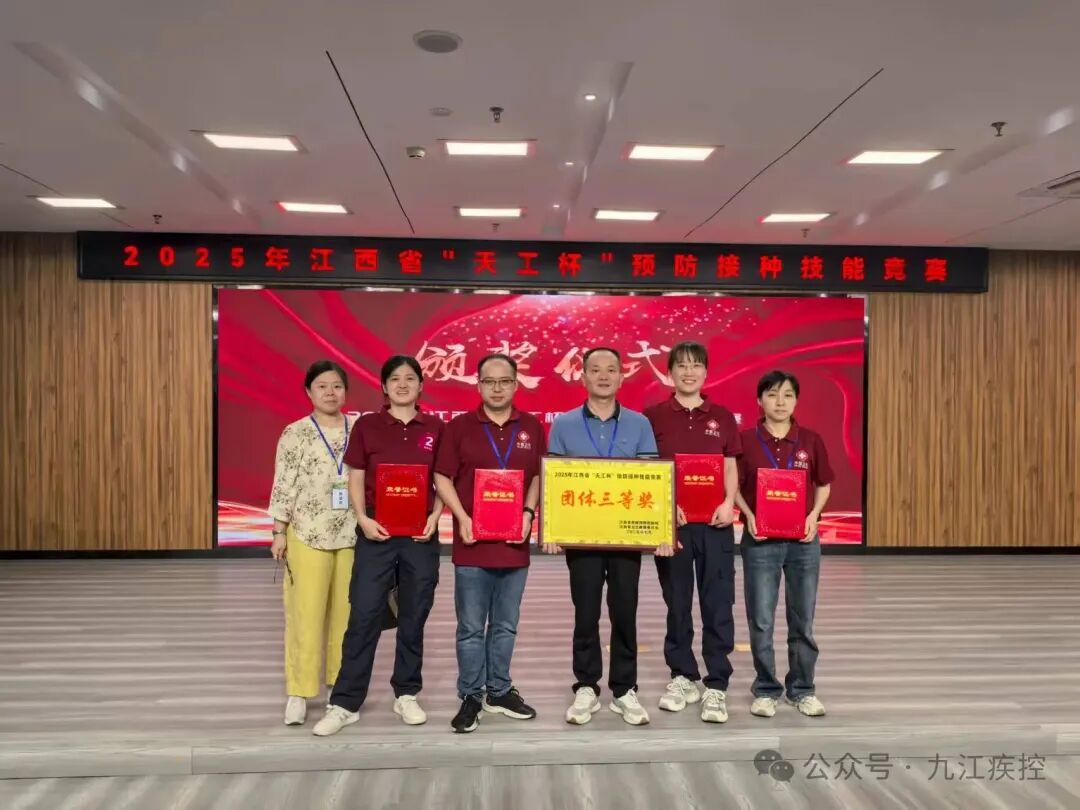 在2025年江西省“天工杯”预防接种技能竞赛中,九江市疾控系统代表队凭借扎实的专业知识和出色的现场发挥,在全省11支参赛队伍的激烈竞争中脱颖而出,取得团体三等奖的优异成绩。全省参赛队员中共有22名选手荣获个人奖项,九江代表队四名队员均获得个人奖项,其中,彭泽县选手张爱霞以优异表现荣获预防接种组个人一等奖,浔阳区选手张甜、都昌县选手段晓亮、德安县选手吴木金三人获得个人优秀奖,充分彰显了九江市预防接种队伍的高水平专业素养。